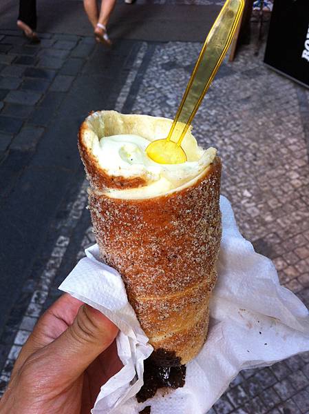 街上都在賣的甜點Trdelnik 裡面有冰淇淋 如果還有去其他捷克城市 可以再去那買